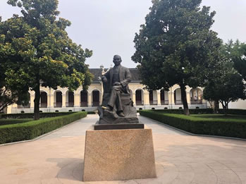 紅柱灰瓦、方磚鋪地的大堂建于太平天國(guó)榮光大殿原址,大堂正中懸掛孫中山手書“天下為公”橫匾。大堂后有東、西廂房各一,其后由封閉的西式通體方格毛玻璃封閉穿堂與二堂相連。穿堂東面是一清代四合院,西面是大禮堂。