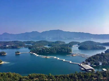 湖區(qū)擁有形態(tài)各異、大小不一的島嶼8000多座,其中包括愛心島、云居島、女神島、滄海島、箬溪島、明珠島、桑田島等。島相依,橋相連,舟相伴,幕阜、九嶺山脈,層巒疊嶂,碧波萬頃,綠島擁翠,猶如顆顆翡翠落玉盤。