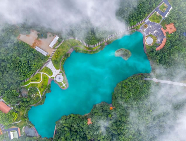 福鰲塘又稱“火山瑤池”,面積300余畝,海拔約900米,是一個(gè)天然的山間小盆地。在8億多年前,這里是個(gè)火山口,火山噴發(fā)后形成了一個(gè)巨大的環(huán)形坑口,雨水和周圍的森林縫隙水匯集到這里,形成了我們現(xiàn)在看到的這個(gè)湖。湖水常年保持一定的水位,從不枯竭,所以我們也叫它“源頭火山湖”。