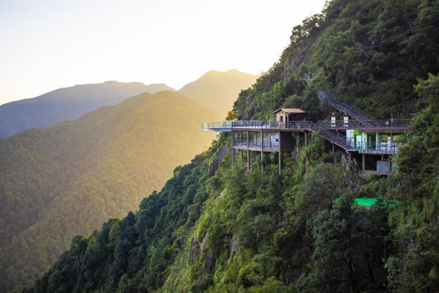 漫云棧道,全長(zhǎng)共3166米,其中玻璃棧道80米,是一條以福鰲塘后山為環(huán)線的懸崖觀景游步道,串聯(lián)天臺(tái)、天印奇松、劍尖峰、玻璃橋等主要景點(diǎn),也是山岳型景區(qū)中極其少有的可實(shí)現(xiàn)全程無障礙通行的人性化游步道。遠(yuǎn)遠(yuǎn)望去,猶如一條蜿蜒曲折懸掛于山間的腰帶。起霧時(shí),行走其間,猶如漫步云中,宛如人間仙境。
