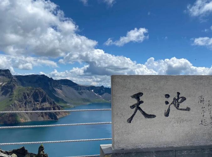 天池位于長白山十六峰的環(huán)抱簇?fù)碇校骋泻0?749米的長白主峰白頭峰,南北長約4400米,東西寬約3370米,其池水的海拔高度為2189.1米,比新疆的天山天池還要高出200余米,是中國最高、最深的火山湖。