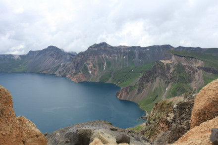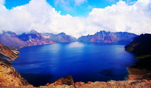 長白山天池,又稱白頭山天池,坐落在吉林省東南部長白山自然保護(hù)區(qū)內(nèi),是中國和朝鮮的界湖,雙方各擁有一部分水域。天池南北長約4400米,東西寬約3370米,其池水的海拔高度為2189.1米,最深處為373米,平均204米,水面面積9.82平方千米,周長13.1千米。據(jù)《長白山江岡志略》記載:“天池在長白山巔的中心點,群峰環(huán)抱,離地高約20余里,故名為天池!