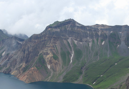 天池周圍火山口壁陡峭,并形成十幾座環(huán)狀山山峰,海拔均在2500米以上,其中將軍峰最高,海拔2749米,位于朝鮮一側(cè)。白云峰海拔2691米,在天池西側(cè),為中國東北的第一高峰。天池東北有天豁、鐵壁、華蓋、紫霞諸峰,天池西南有梯云、臥虎、冠冕(玉雪)諸峰,天池西北有龍門、觀日、錦屏、芝盤、玉柱(青石)諸峰。因駐有氣象站而得名的天文峰(2670米),介于鐵壁、華蓋兩峰之間,山峰不顯,有公路直抵山顛,可俯瞰天池。