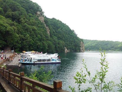 在三角龍灣的碼頭憑欄觀水,能夠近距離的感受一灣潔凈碧綠的圣水,在這種火山堰塞湖里,更富含各種礦物元素,灣水清澈見底,透光可見度達(dá)到十多米。近年來(lái),龍灣旅游公司先后購(gòu)置了多艘豪華型、畫舫型游船用于旅游觀光,在平靜的高山湖泊上交替航行,形成一道亮麗的風(fēng)景。 |