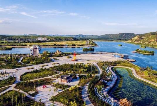 這里青山蓊郁,峻嶺巍峨,凌水南來(lái),浩浩蕩蕩,兩岸柳樹堆云,陰翳蔽日,河湖、景觀樹、濕地、蘆葦蕩、閣亭連廊等掩映其間,形成了“林護(hù)河,水潤(rùn)林,景映水”的生態(tài)景觀,同時(shí)又與緊鄰的敖木倫濕地公園以及龍?jiān)春皡^(qū)組成“十公里凌河景觀廊道”,一路上千畝碧波、百畝花海宛若世外桃源,人間仙境。