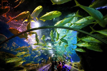 走進(jìn)中國第一座海底通道,體驗(yàn)第一次置身海底的感動。漫步在波光粼粼的幽藍(lán)海底,300余種、近萬尾海洋生靈觸手可及;遭遇大鯊魚遮天蔽日,欣賞炫彩巖礁光彩奪目,傾聽斷壁殘垣訴說昔日繁華;握緊她/他的手,一起走過這118米的奇幻之旅,共同游歷傳說中的亞特蘭蒂斯。