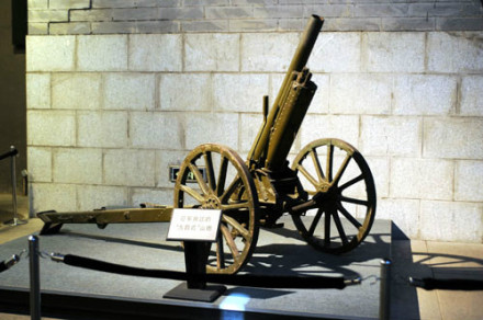 日本九四式山炮:1945年日本其中的戰(zhàn)敗后,其武器、軍備被中國軍繳獲,其中包括一批九四式山炮。 文革后,一門九四式山炮幾經(jīng)輾轉(zhuǎn),到了沈陽軍區(qū)一分部吉林敦化分庫的軍需倉庫。1997年12月4日,“九一八”事變紀念館擴建辦公室到吉林敦化征集到該山炮及專用炮嘴。1999年9月18日,該九四式山炮及專用炮嘴由“九一八”歷史博物館收藏。
