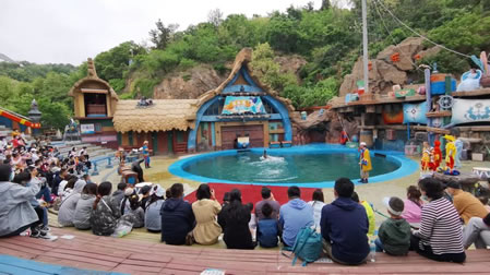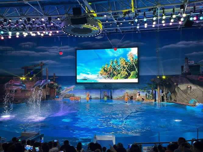 第四部分是海洋動(dòng)物表演場(chǎng)。大型的海洋哺乳類動(dòng)物的表演劇場(chǎng)。