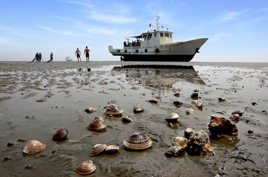 渤海遼東灣的萬(wàn)頃碧波,遮掩著數(shù)不盡的珍奇異寶。盤(pán)錦市西南部的二界溝海邊的蛤蜊崗就是一處神奇的所在。乘坐漁船,來(lái)到蛤蜊崗上,等潮水漸漸地落下去,一片金色沙灘從海水中顯露出來(lái),挽起褲腿,甩掉鞋子,光腳踩上松軟的沙灘,令人有說(shuō)不出的爽適與愜意。