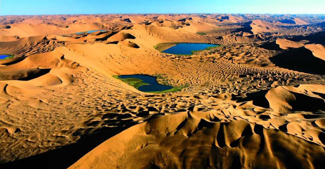 面積約4.43萬平方千米,是中國第三大沙漠。流動沙丘占全部沙漠面積的83%。中部有高大沙山,一般高200-300m,最高的達(dá)500m。高大沙山間的低地有144個內(nèi)陸小湖。巴丹吉林沙漠有“中國最美的沙漠”的美稱。是阿拉善世界沙漠地質(zhì)公園的核心區(qū)域。