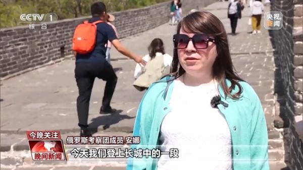 俄羅斯考察團(tuán)成員 安娜:今天我們登上長城中的一段,我的感受非常棒。這段長城登起來不算太累,這點(diǎn)很好。