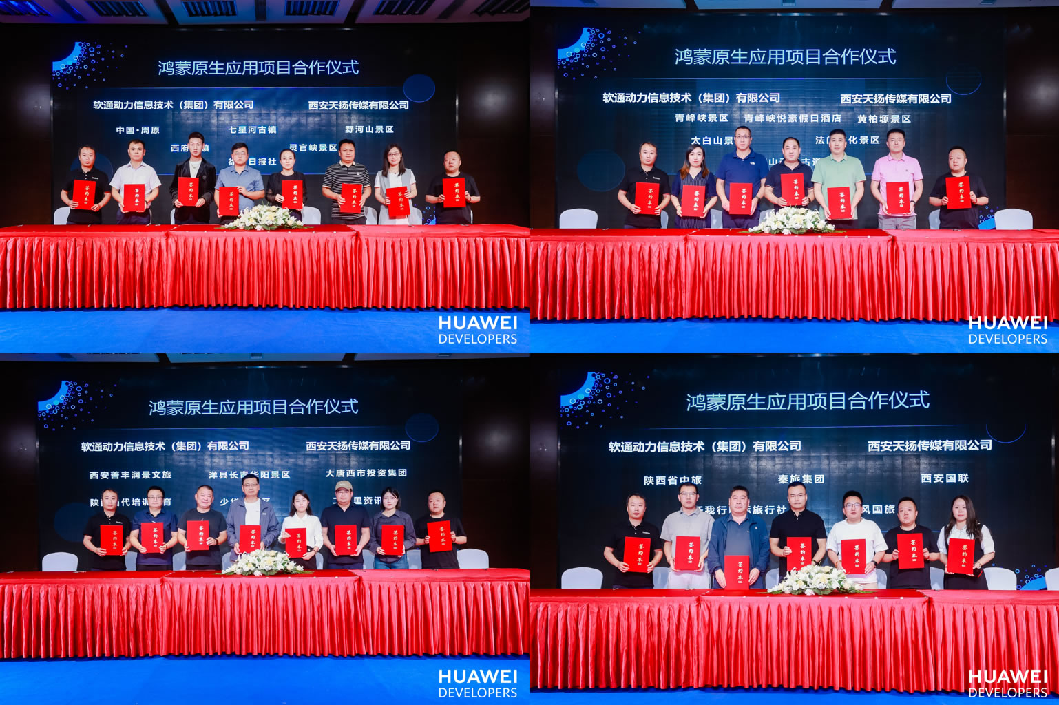 陜西省及西安市境內(nèi)眾多5A級、4A級景區(qū)及其他文旅行業(yè)從業(yè)代表到場共話原生鴻蒙帶來的數(shù)智創(chuàng)新引力。中國周原景區(qū)、七星河古鎮(zhèn)、野河山景區(qū)、西府古鎮(zhèn)、靈官峽景區(qū)、徐州日報社、黃柏塬景區(qū)、青峰峽景區(qū)、太白山景區(qū)、法門文化景區(qū)、少華山景區(qū)、洋縣長青華陽景區(qū)、大唐西市投資集團、西安善豐潤景文旅、陜西當(dāng)代培訓(xùn)教育、華商二三里資訊、陜西省中旅、西安國聯(lián)、任我行國際旅行社、秦風(fēng)國旅共20家景區(qū)及文旅行業(yè)相關(guān)應(yīng)用現(xiàn)場簽約,將深度結(jié)合HarmonyOS文旅行業(yè)“樣板間”能力,啟動鴻蒙原生應(yīng)用/服務(wù)開發(fā)。據(jù)了解,華為開發(fā)者聯(lián)盟生態(tài)市場已聯(lián)合軟通動力規(guī)劃上線HarmonyOS文旅行業(yè)“樣板間”,該“樣板間”可實現(xiàn)95%公共特性覆蓋,并助力行業(yè)應(yīng)用實現(xiàn)80%以上的開發(fā)效率提升,實現(xiàn)高效打造智慧文旅行業(yè)創(chuàng)新體驗。