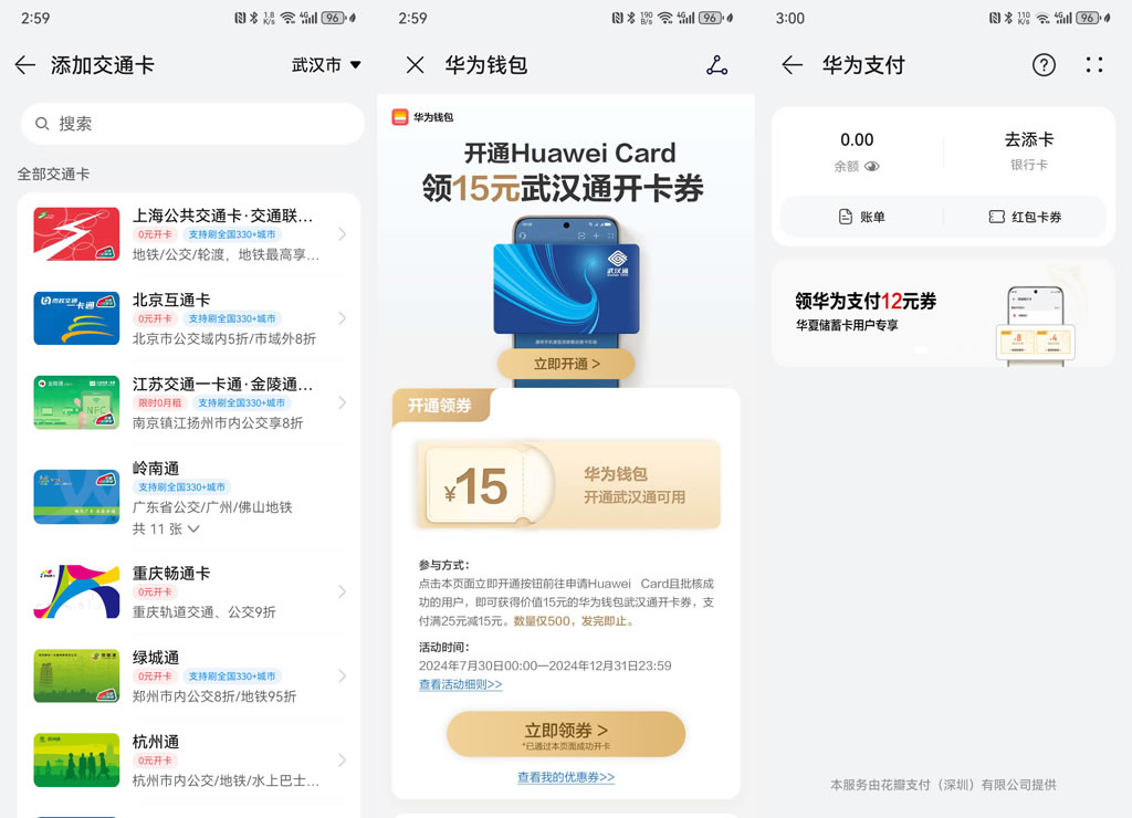 值得一提的是,華為錢(qián)包在國(guó)慶節(jié)期間還帶來(lái)了不少福利,比如開(kāi)通公交卡0元起,一張卡就可刷全國(guó)330多個(gè)旅游城市;新用戶開(kāi)卡充值交通卡還有特別折扣,9月23日至10月7日最高立減5元;如果需要高精度定位服務(wù)和車(chē)道級(jí)導(dǎo)航,新用戶使用華為錢(qián)包開(kāi)卡首年0元,在負(fù)一屏充值手機(jī)話費(fèi)或者加油時(shí)也可享受首單立減6元等優(yōu)惠。綁定銀行卡也有各種立減活動(dòng),十分劃算!