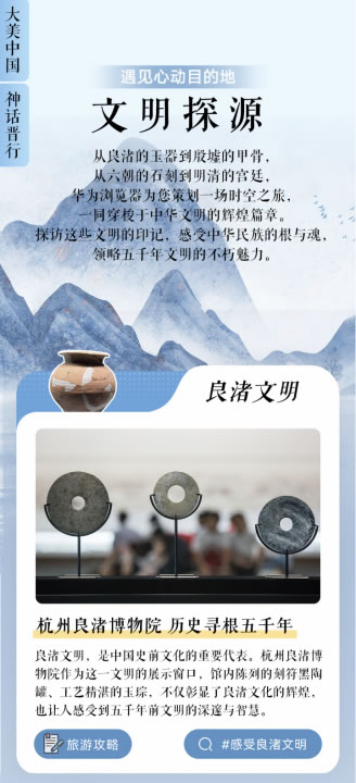 文化愛好者往往更喜歡去有歷史意義的地方,比如各處博物館、歷史古跡。在國(guó)慶頻道“遇見心動(dòng)目的地”系列專題,有“文明探源”板塊。從良渚的精美玉器到殷墟的古老甲骨,從六朝的石刻藝術(shù)到明清的宮廷風(fēng)貌,縱享深入探索中華文明的悠久歷史與燦爛文化的魅力。