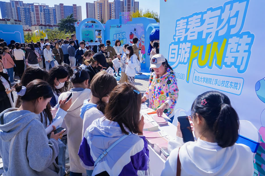為促進大學生對韓國文化的喜愛和了解,吸引更多的年輕人訪問韓國,韓國旅游發(fā)展局于10.19日在青島大學舉辦“山東省大學生韓流慶典”,本次慶典分為“第十五屆山東省大學生k-pop大賽”和“青春有約,自游FUN韓”文化體驗兩個部分,共吸引山東省內(nèi)20所大學學生參與。