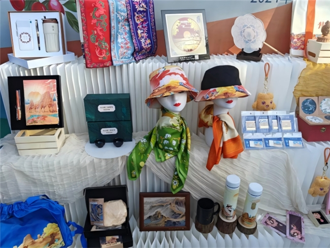 活動現(xiàn)場,展示了巴州八縣一市多款具有特色的文創(chuàng)產(chǎn)品,包括樓蘭織錦、衛(wèi)衣、手提包、水杯、明信片、冰箱貼和紀念幣等,不僅設計精美,而且蘊含了深厚的巴州歷史和文化底蘊,吸引了眾多游客的目光。