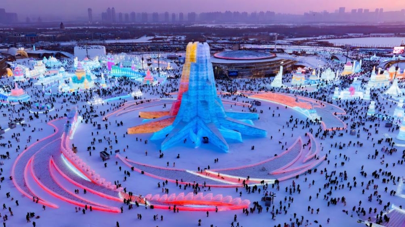 在冰雪大世界園區(qū),白天晶瑩剔透,夜晚流光溢彩,“亞洲同心”主塔、亞洲地標(biāo)建筑冰雕等成為熱門(mén)打卡地。500多米長(zhǎng)的超級(jí)冰滑梯、雪圈滑道、冰上自行車、雪花摩天輪、冰迷宮等娛樂(lè)項(xiàng)目,“冰馬俑”、冰封玫瑰墻、許愿冰墻等新場(chǎng)景,不斷帶來(lái)驚喜。夢(mèng)想大舞臺(tái)、無(wú)人機(jī)表演、煙花秀等演出累計(jì)上演1900余場(chǎng)。