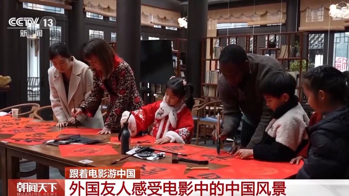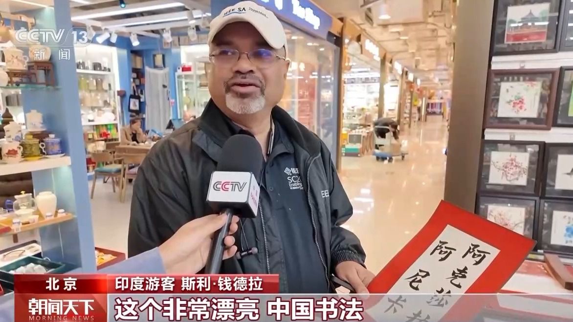 印度游客 斯利·錢德拉:中國電影很流行,我每到一個(gè)地方,都會(huì)用當(dāng)?shù)匚淖謱懴屡畠旱拿。我喜歡文化,不同地域的當(dāng)?shù)匚幕,這個(gè)非常漂亮,中國書法。