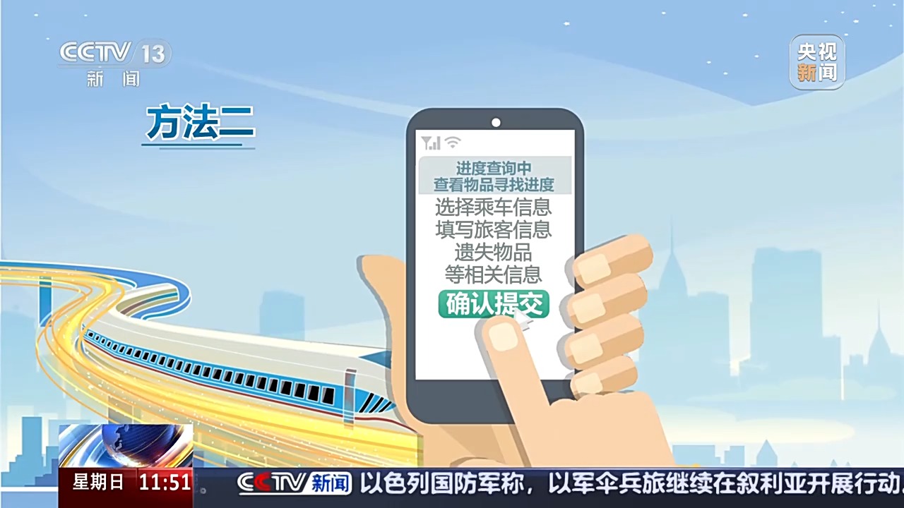 方法三:撥打全國鐵路客戶服務(wù)電話12306,準確提供車次、地點、物品描述、聯(lián)系人等信息,鐵路部門將全力幫您查找。