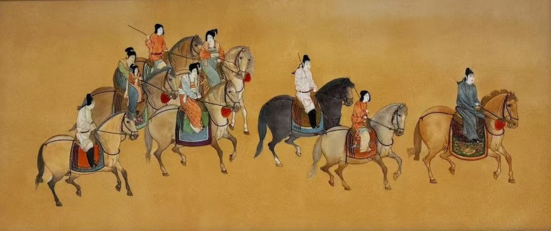 (瓷板粉彩-虢國(guó)夫人游春圖-作者-羅爾拉)