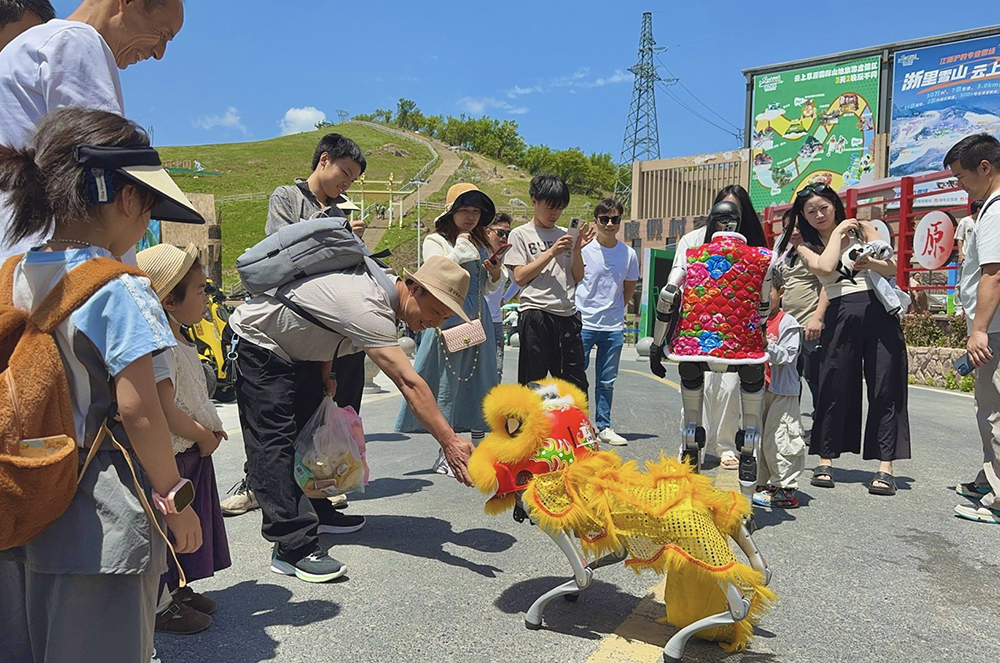 宇樹機(jī)器人與機(jī)器狗戰(zhàn)隊(duì)正在草坪上“營業(yè)”,科技感十足的巡游表演吸引大批游客圍觀。萌寵機(jī)器人不僅能隨音樂蹦迪,還能與小朋友擊掌互動(dòng),現(xiàn)場歡笑聲不斷。
