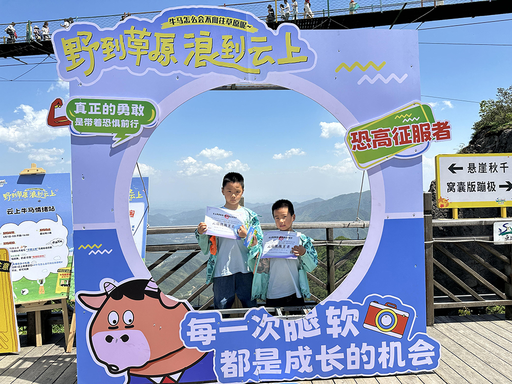 懸崖秋千、窩囊蹦極、飛拉達(dá)·懸崖穿越等六大極限項(xiàng)目挑戰(zhàn)賽正如火如荼進(jìn)行中。不少游客在“步步驚心”高空索道上顫抖前行,卻仍高舉手機(jī)記錄驚險(xiǎn)瞬間。完成挑戰(zhàn)者可現(xiàn)場領(lǐng)取“勇氣證書”。