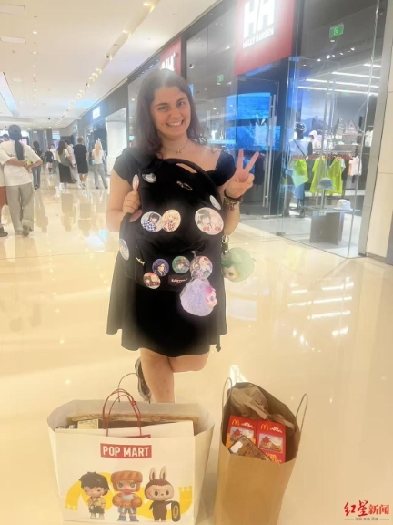 同樣來成都玩的,還有27歲的意大利女孩瑪?shù)倌龋∕artina)。6月25日下午,瑪?shù)倌日诔啥嫉囊患遗菖莠斕氐赀x購?吹搅宅槤M目的潮流玩具,瑪?shù)倌纫贿M(jìn)去就是半小時(shí)以上,足足選了一大袋才出來,“在意大利,泡泡瑪特的店鋪不多,商品品種也沒有這么齊全。”
