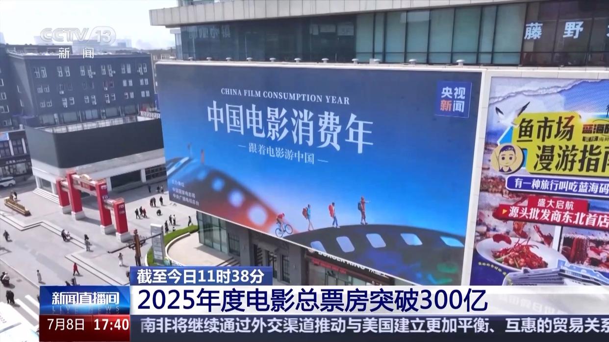 據(jù)網(wǎng)絡平臺數(shù)據(jù),截至今天(7月8日)11時38分,2025年度電影票房(含預售)突破300億,相較去年提前28天。