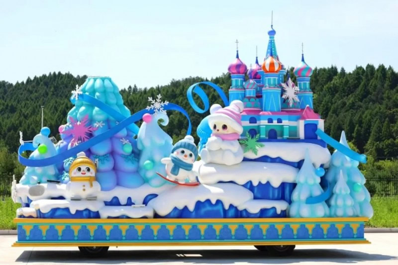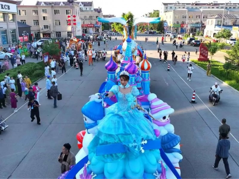 “冰雪綺夢花車”,巧妙融合了伊春作為“紅松故鄉(xiāng)”的生態(tài)特色與對俄開放的地緣優(yōu)勢。銀裝素裹的紅松林展現(xiàn)北國冰雪魅力,俄羅斯城堡造型呼應(yīng)伊春作為中俄邊境城市的開放姿態(tài)。雪人點(diǎn)綴其間營造歡樂氛圍,底部藍(lán)色水系裝飾象征黑龍江流域的聯(lián)通作用;ㄜ囃ㄟ^冰雪童話場景,既展示了伊春冬季旅游的獨(dú)特吸引力,更傳遞出“以冰雪為媒,促開放合作”的發(fā)展理念,生動(dòng)詮釋了伊春立足生態(tài)優(yōu)勢、深化對外合作、推動(dòng)高質(zhì)量發(fā)展的戰(zhàn)略方向,誠邀八方賓客共赴冰雪之約、共享開放機(jī)遇。