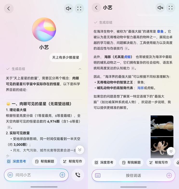 如果是親子游,逛海洋館或博物館時(shí)也可以拍照拖給小藝或者圈選問問小藝,和孩子一起探索“海洋知識(shí)”、“文物歷史”等知識(shí),不失為一種寓教于樂的好辦法,讓出行更有意義。旅游途中不用擔(dān)心小朋友問出“天上有多少顆星星?”“海水為什么是咸的?”“動(dòng)物界的'最強(qiáng)大腦'?”等等十萬個(gè)為什么。