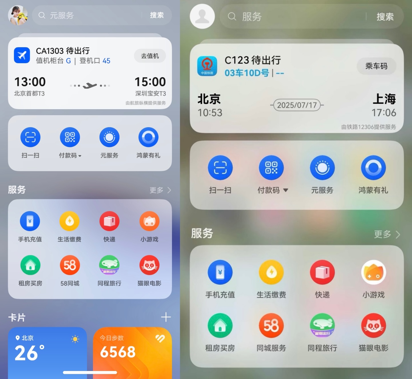 華為負(fù)一屏出行好幫手,高鐵航班信息全掌握