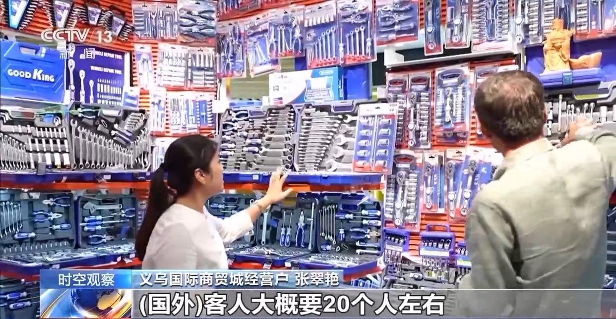 義烏國際商貿(mào)城經(jīng)營戶 張翠艷:去年我們每天進(jìn)店的國外客人可能10個人,今年夏天我們每天進(jìn)店的國外客人大概20個人左右,明顯國外客人增加比較多。有很多國家的客人,中亞的比較多,最近非洲的、南美的也很多。