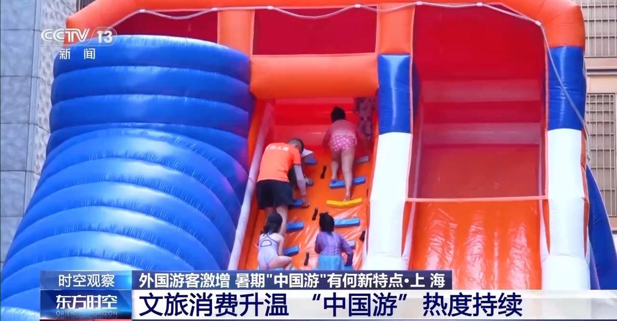 “清涼經(jīng)濟(jì)”也是這個夏天的熱門打開方式。7月以來,上海外灘搬來了一座暑期限定的水上樂園,帶領(lǐng)市民游客開啟玩水模式。打水仗、蕩秋千、爬索道,每個角落都藏著意想不到的清涼驚喜。