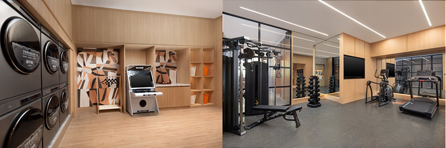 暢享“智慧”家居也是Atwell筑格酒店的重要特色之一。酒店配備全屋智能操控系統(tǒng),支持語音控制與一鍵客服,賓客可輕松調(diào)節(jié)溫度與燈光,使用智能家電,并配備隨心調(diào)節(jié)高低的升降桌以滿足不同場景需求。浴室設有熱毛巾架,電視支持智能投屏,賓客可獲得更順暢的居停體驗。酒店還設有“洗躍”健身洗衣空間,配有座位、游戲機等設施,打造具備洗衣和健身功能的社交休閑區(qū),讓入住體驗更加豐富自在。