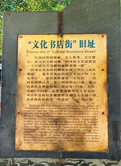 桂林“文化書店街”舊址紀(jì)念碑。