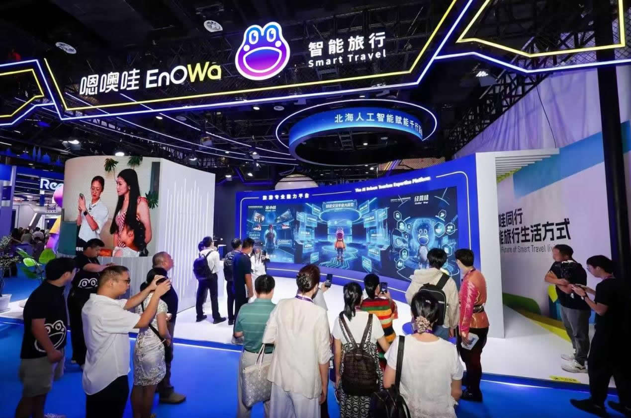 在嗯噢哇科技的展臺上,一個“需供同智”的未來智能旅行世界生動展開。這一模式通過AI技術重新定義“所想即所得”的旅行新范式,為游客提供精準匹配的個性化體驗,同時為商家及目的地運營者搭建全鏈路智能體系。