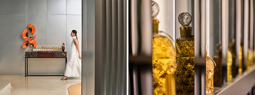 步入璞瑄酒店的嬌蘭SPA,如同進入一間頗具表現(xiàn)力的臻藝空間,藝術裝置系藝術家 Paula Bastiaansen 的作品,熠熠生輝的骨瓷,展現(xiàn)其精致、輕盈、追求永恒的詩意;同時,每一位員工皆為藝術品陳述者,設計師 Maison Duvelleroy 將扇子作為服飾的靈感,為璞瑄重新演繹注入傳統(tǒng)卻飽含先鋒設計理念的至奢制服。