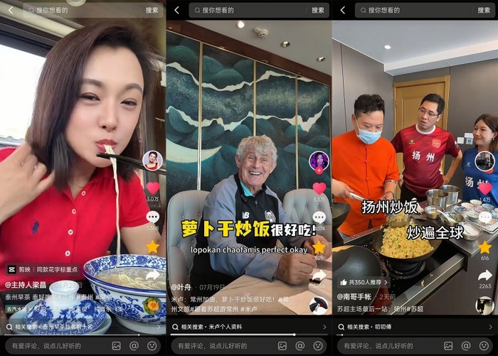 借助賽事熱度,江蘇省各地非遺美食“家底”也被輪番曝光。@主持人梁晶 在泰州觀賽時(shí),發(fā)布美食視頻稱贊“在泰州叫醒我的不是鬧鐘,而是泰州的早茶”,獲數(shù)萬(wàn)點(diǎn)贊;前國(guó)足國(guó)家隊(duì)主教練米盧現(xiàn)身常州隊(duì)比賽觀眾席,并用中文大贊“蘿卜干炒飯”好吃,向網(wǎng)友種草;江蘇本地達(dá)人@叨叨傅 輾轉(zhuǎn)多城觀賽,品嘗鎮(zhèn)江鍋蓋面,學(xué)做揚(yáng)州炒飯,吃遍各地美食。數(shù)據(jù)顯示,5月10日至9月15日,抖音江蘇非遺餐飲相關(guān)團(tuán)購(gòu)訂單同比增長(zhǎng)49%,銷售額同比增長(zhǎng)209%。