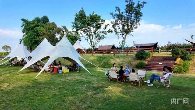 多元體驗(yàn)讓假日消費(fèi)延伸出更多維度。秋日艷陽(yáng)下,孩子們?cè)诩t高粱地中盡情高歌;滿(mǎn)天星斗下,非遺傳承人揮舞的鐵花點(diǎn)亮夜空;星空影院前,游人圍坐煮茶觀(guān)影;露營(yíng)基地內(nèi),燒烤的香氣飄滿(mǎn)整個(gè)田野……這座融合文化體驗(yàn)與田園休閑的園區(qū),正成為人們的假日消費(fèi)的新選擇。園區(qū)負(fù)責(zé)人陳霞介紹,園區(qū)內(nèi)專(zhuān)門(mén)設(shè)計(jì)了甲骨文識(shí)字、傳統(tǒng)文化研學(xué)、高粱采收等親子項(xiàng)目,讓游客在體驗(yàn)中消費(fèi),在消費(fèi)中感受文化。