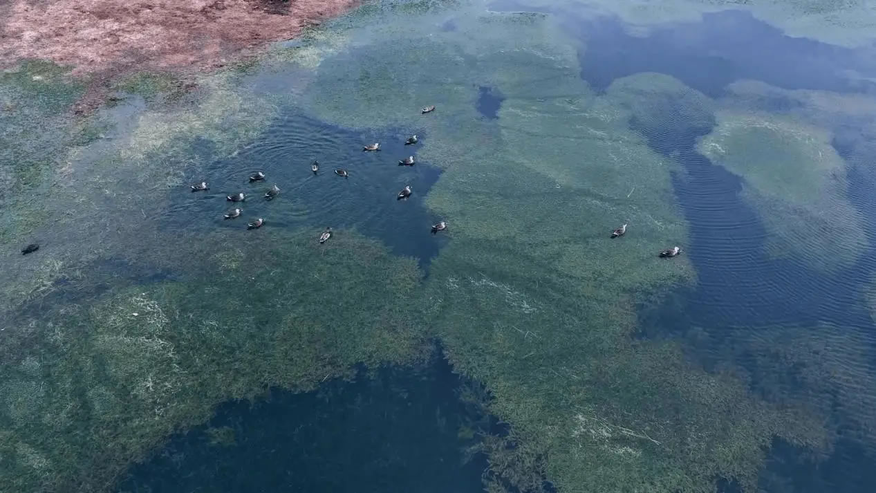 陽光灑落時,湖水清澈見底,魚兒在水中自在游弋,與岸邊景致構成絕佳畫面。此外,黑翅長腳鷸也不時現(xiàn)身灘涂,為這幅生態(tài)圖景再添一抹靈動色彩。