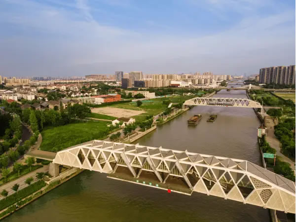 在滸墅關(guān),順應(yīng)民生所需,以文脈傳承、文化賦能滿足人民群眾對(duì)美好生活的向往,“紅房子”并非個(gè)例。就在距“紅房子”咫尺之遙的大運(yùn)河上,造型別具一格的滸關(guān)南橋、北橋吸人眼球。橋身,大量運(yùn)用三角形與菱形元素,充分彰顯現(xiàn)代結(jié)構(gòu)美學(xué);橋中,幾座“尖頂閣樓”突起,是特意營(yíng)造的觀水場(chǎng)所;橋下,運(yùn)河汩汩流淌,一艘艘貨輪推開波紋向前駛?cè)ァ?/p>