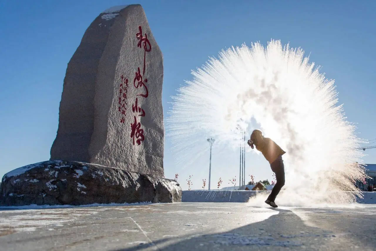 神州北極潑水成冰(哈爾濱市旅游協(xié)會(huì)供圖)