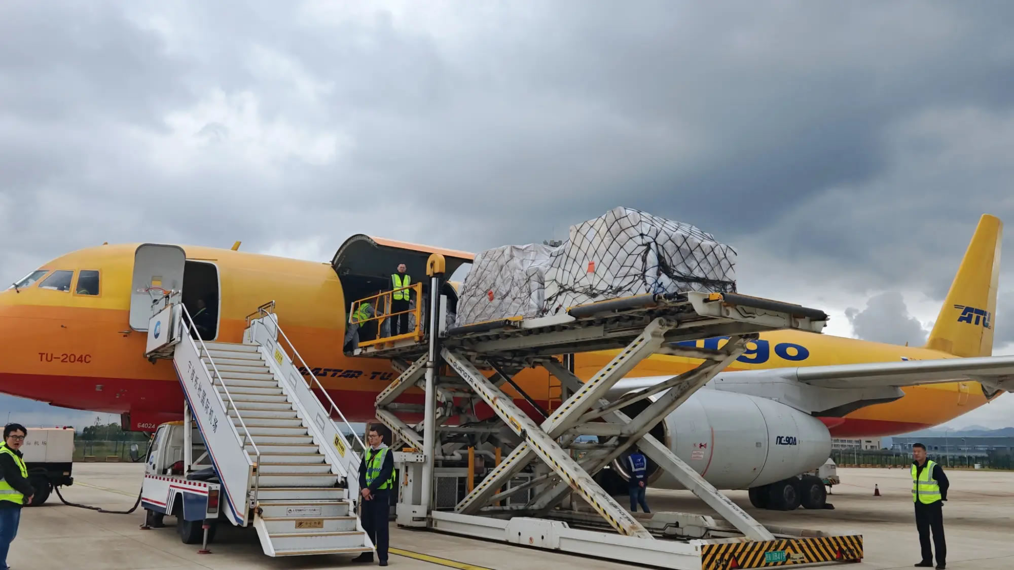 TU204C全貨機(jī)裝貨現(xiàn)場(央廣網(wǎng)發(fā) 寧波機(jī)場供圖)