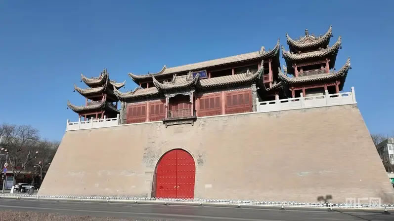 央廣網(wǎng)銀川12月18日消息(記者李暢 實(shí)習(xí)記者楊佳)這張照片定格了寧夏銀川玉皇閣的經(jīng)典樣貌,在湛藍(lán)晴空的映襯下,這座明清風(fēng)格的古建筑更顯恢弘。建筑以高大的夯土臺基為基底,米黃色的墻體厚重古樸,正中朱紅大門嵌著金色門釘,視覺沖擊力十足。臺基之上的樓閣群布局精巧,多重歇山頂層層疊疊,飛檐翹角雕刻細(xì)膩,紅漆木構(gòu)與灰瓦搭配和諧,盡顯中式古建筑的工藝之美。玉皇閣是銀川老城的中心地標(biāo),最初為明代鐘鼓樓,后歷經(jīng)修繕,如今不僅是珍貴的建筑遺存,更是銀川歷史文化的鮮活載體,靜靜訴說著塞上古城的歲月故事。