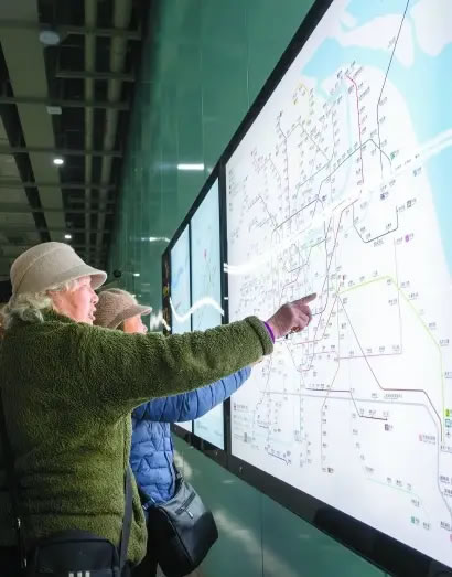 18號(hào)線二期工程開通初期運(yùn)營。一早,市民在康文路站內(nèi)了解上海軌交最新運(yùn)營網(wǎng)線圖。記者 孟雨涵 攝