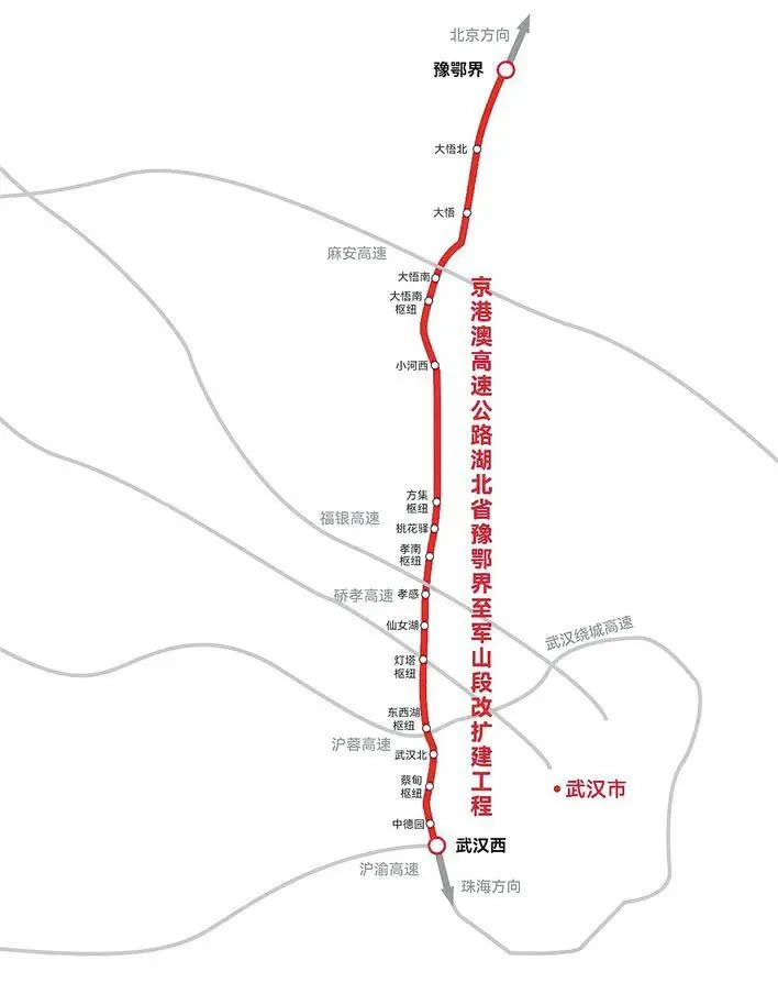 2月6日零時起,隨著雙向八車道和沿線新改建的收費站投入運營,由湖北交投集團投資建設的京港澳高速公路鄂豫界至軍山段(湖北北段)“四改八”改擴建工程正式通車。