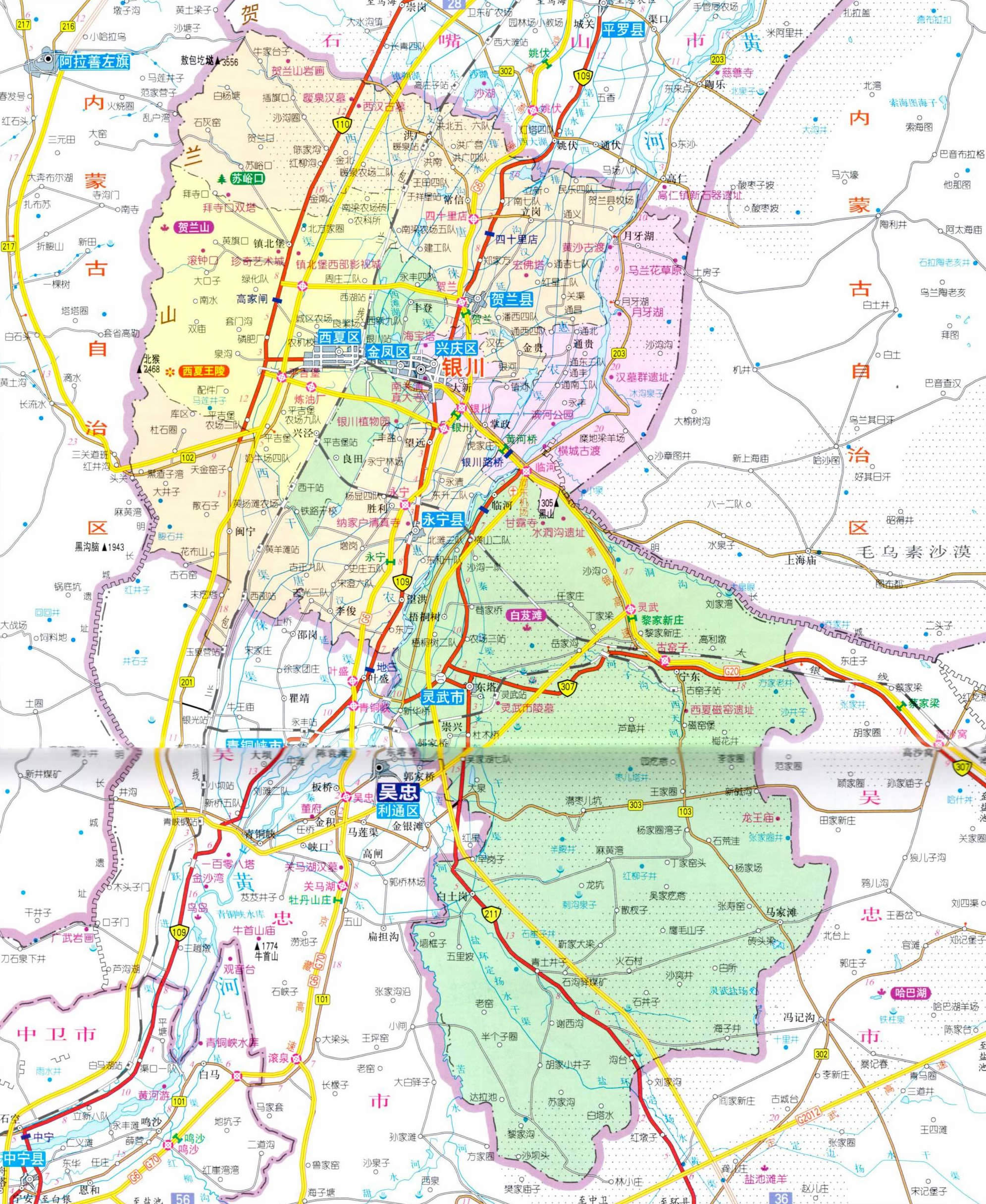 銀川市轄3個(gè)市轄區(qū)、2個(gè)縣,代管1個(gè)縣級(jí)市: