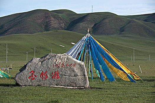 金銀灘的黃金季節(jié)是7、8、9三個月,鮮花盛開,百鳥飛翔,尤其是百靈鳥兒的歌聲,動聽迷人。這里是一片碧草如茵的大草原。浮云般的羊群,棕黑相間的牦牛,星星點(diǎn)點(diǎn)地徜徉在青草和野花叢中。穿著藏服的藏民,騎著駿馬悠然地在草原上緩緩而來。遠(yuǎn)處,山巒起伏,偶有雄鷹飛過的身影,蓮花般的蒙古包散落在白云深處。金銀灘草原牧草肥美、牛羊肥壯,人們以金銀遍地來形容這片美麗而富饒的土地,故得名“金銀灘”。
