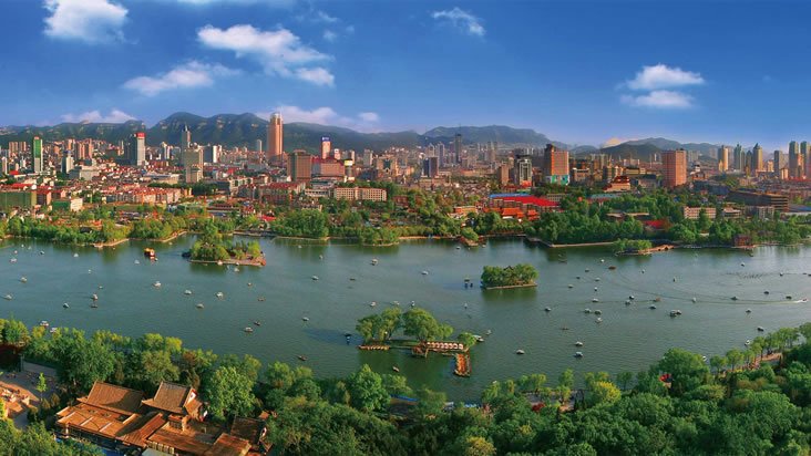 明洪武九年(1376年),濟南成為山東省會。民國十八年(1929年)7月,正式設(shè)立濟南市 。濟南市是國家歷史文化名城,因地處古四瀆之一“濟水”(故道為今黃河所據(jù))之南而得名。遠在9000年前的新石器時代早期,已有先民在此繁衍生息。距今4000至4500年前以磨光黑陶為特征的“龍山文化”,系因民國十七年(1928年)首次發(fā)現(xiàn)于濟南東郊龍山鎮(zhèn)而被命名。濟南是中國人民解放軍北部戰(zhàn)區(qū)陸軍機關(guān)駐地、環(huán)渤海經(jīng)濟區(qū)和京滬經(jīng)濟軸上的重要交匯點,華東地區(qū)重要的交通樞紐之一。濟南因境內(nèi)泉水眾多,擁有“七十二名泉”,素有“天下第一泉”和“四面荷花三面柳,一城山色半城湖”的美譽,濟南八景聞名于世,超然樓是明湖新八景之一,是網(wǎng)紅打卡地,是擁有“山、泉、湖、河、城”獨特風(fēng)貌的旅游城市。