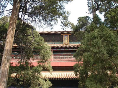 大中門原名中和門,較弘道門長且狹,共5間,原為宋代孔廟的大門,后經(jīng)明弘治時重修,今門系清代所建。門左右兩旁禹有綠瓦拐角樓一座,系元至順二年(公元1331年)為使孔廟象皇宮一樣威嚴而建的。角樓均3間,平面作曲尺形,立在正方形的高臺之上,臺之內(nèi)側(cè)有馬道可以上下。此兩角樓瓦廟東北、西北兩角樓構(gòu)成一個巨大的長方形,以供守衛(wèi)之用。
